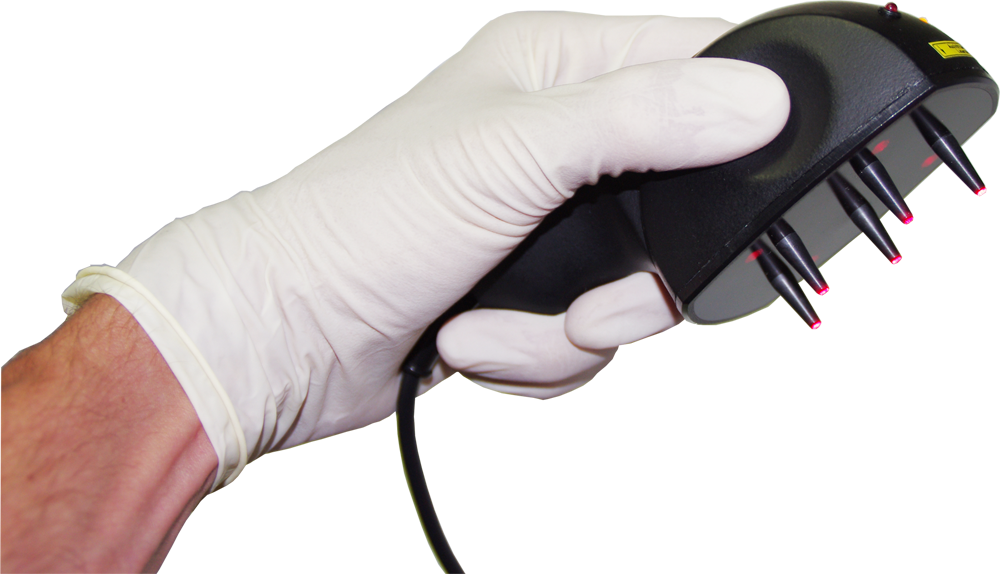 - Kleiner Laserkamm (5 Laserdioden á 120 mW und 785 nm) - Gesamtlaserleistung 600 mW